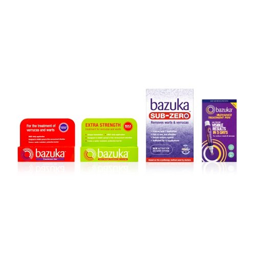 Most of us will get a verruca or wart at least once in our life, usually before the age of 20. Delaying treatment can make them harder to get rid of and painful to touch. So, identifying them and treating promptly is key. Bazuka Sub-Zero is a home use ‘freeze’ treatment for warts and verrucas on the hands and feet based on the cryotherapy method used by doctors. Using VERRUKILL technology, Bazuka Sub-Zero delivers a safe, fast and effective way to get rid of verrucas and warts, often with as little as one freeze. Bazuka Sub-Zero works to: Quickly freeze the wart or verruca to its core, causing the formation of a blister underneath the wart or verruca which helps it to loosen and fall off, often within a couple of weeks or so of freezing, revealing new, healthy skin underneath. * Based on AC Nielsen MAT value and unit sales 30.12.2023.