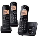 Panasonic KX-TGC223EB DECT Cordless Phone with Answering Machine, 1.6 inch Easy-to-Read Backlit Display, Nuisance Call Blocker, Hands-Free Speakerphone, ECO Mode – Black, Trio Handset Pack
