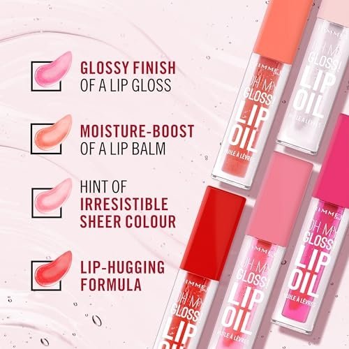 Rimmel Oh My Gloss! Lip Oil 001 Pink Flush, Juicy Shine, Hydrates & Naturally Plumps, Moisture Boost, Vitamin E, Replenishes & Restores the Lips, Coconut Oil, Non-Sticky, Vegan & Cruelty Free