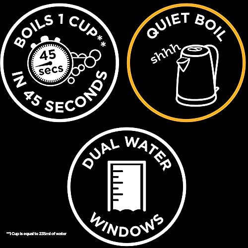 - A rapid boil zone indicator within the kettle allows you to fill just the right amount of water and boils one cup super-fast taking only 45 seconds