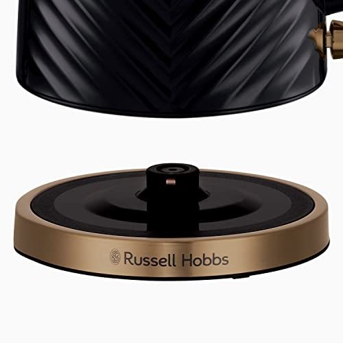 Russell Hobbs Groove Electric 1.7L Cordless Kettle (Fast Boil 3KW, Black textured plastic with brushed gold accents, Removable washable anti-scale filter, Push to open lid, Perfect pour spout) 26380