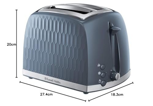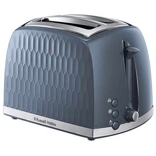 Details: Russell Hobbs 26063 2 Slice Toaster – Contemporary Honeycomb Design with Extra Wide Slots and High Lift Feature, Grey