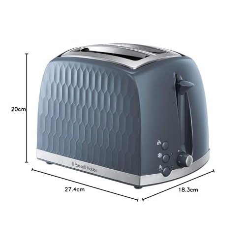Russell Hobbs Honeycomb 2 Slice Toaster (Extra wide slots, High lift feature, 6 Browning levels, Frozen/Cancel/Reheat function, Removable crumb tray, 850W, Grey textured high gloss) 26063