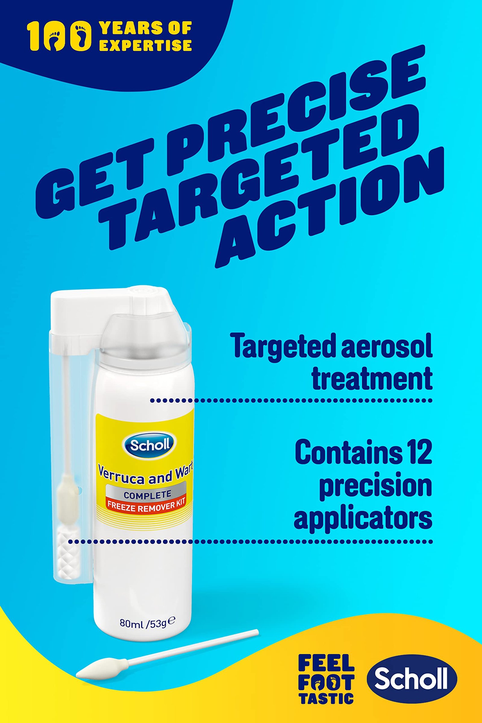 • PRECISE, TARGETED ACTION: Scholl verruca removal system has precision applicators which are designed to target only the wart or verruca and avoid surrounding healthy skin. Should form a blister after application and fall off in 10-14 days