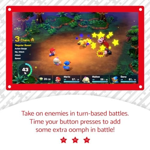 - Team up with an oddball group of heroes to save Star Road and stop the troublemaking Smithy Gang. This colourful RPG has updated graphics and cinematics that add even more charm to the unexpected alliance between Mario, Bowser, Peach, and original characters Mallow and Geno! Enter this world of eccentric allies and offbeat enemies in an RPG for everyone.
