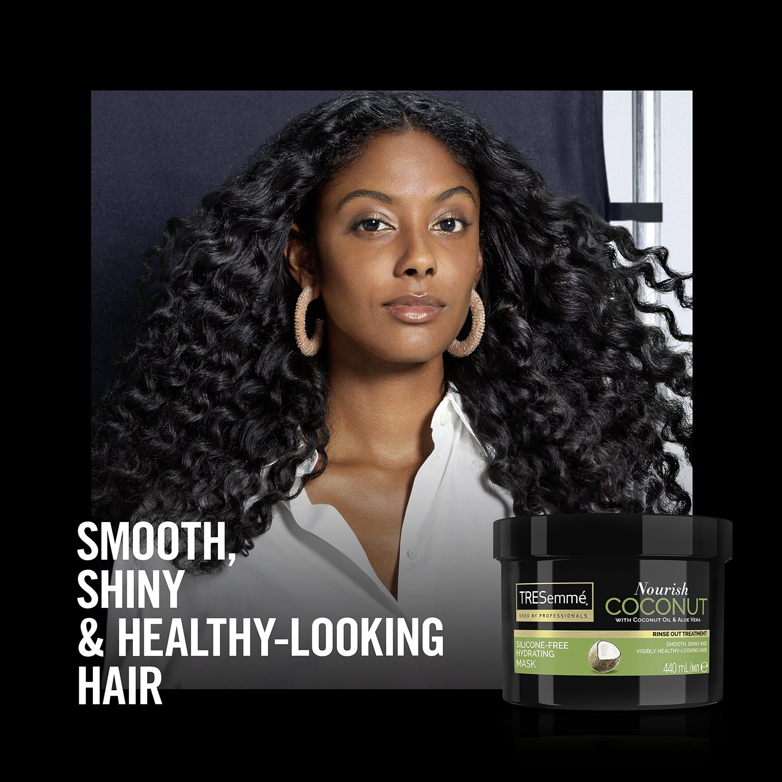 - Achieve smooth, shiny, and visibly healthy-looking hair with Tresemme Nourish Coconut Hydrating Mask